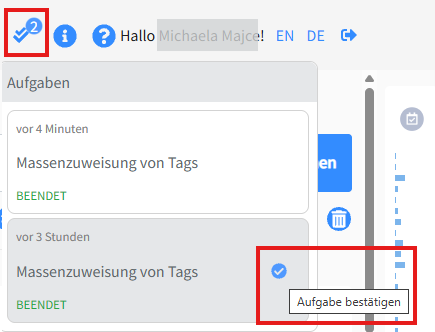 Nach der Kontrolle, können Sie Statusmeldungen zu Ihren erledigten Aufgaben einfach durch Klick auf das Häkchen neben dem angezeigten Auftrag löschen.
